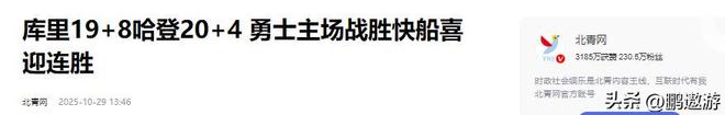 北青网(库里19+8哈登20+4 勇士主场战胜快船喜迎连胜2025.10.29)